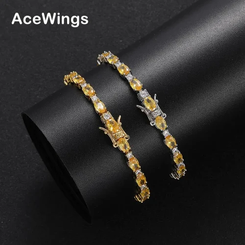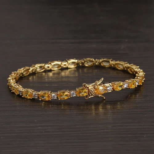 BB128 Women Bling Bling Tennis Bracelet Oval Yellow CZ Chain Bracelets Hip Hop Jewelry