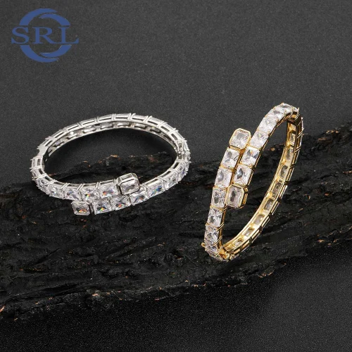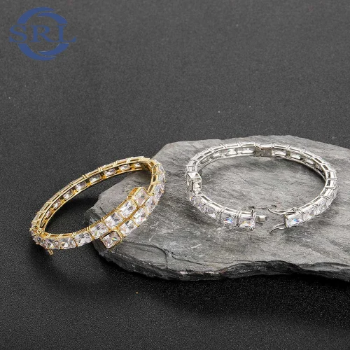Baguette Zircon Diamond Bracelet for Unisex Luxury Iced Out Crystal Bangle for Women Silver Plated Jewelry