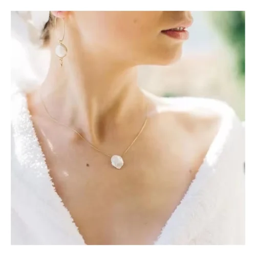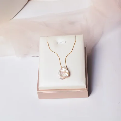 Baroque Freshwater Cultured Pearl Pendant Choker Necklace Simple Gold-Plated Flower Pattern Trendy Jewelry Set for Women