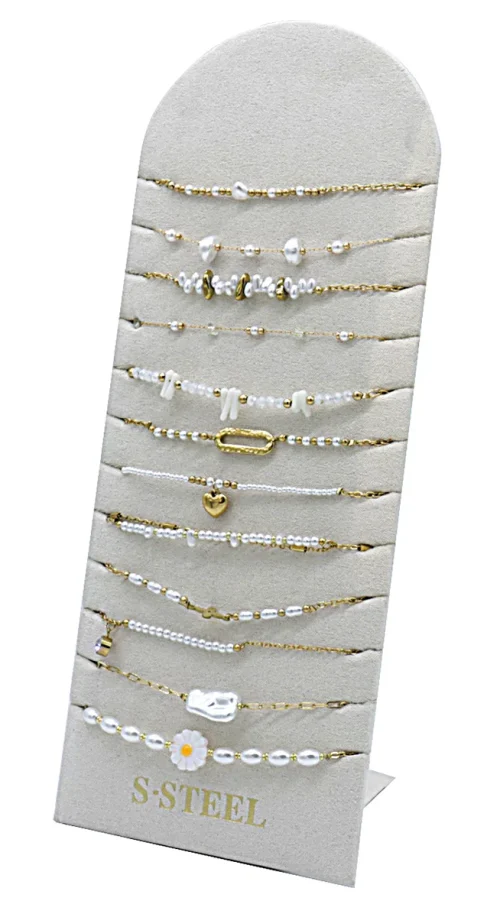 B831-002 1 Halo 12pc Per Display New Design Quality ABS Pearl Crystal Beads Women Gold Fashion Jewelry Bracelet Set