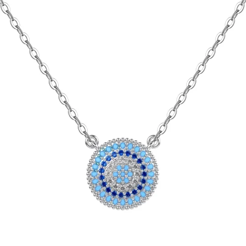 Dylam Popular 925 Sterling Silver Round Blue Lucky Blue Devil Eyes Necklace Pendant Cz Zirconia Necklaces for Women