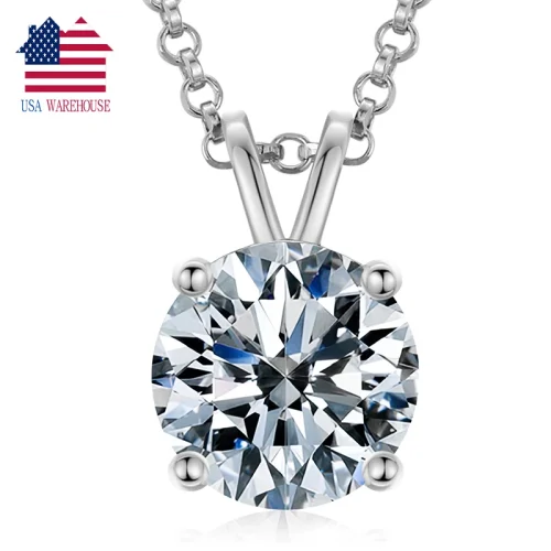 Dropshipping Fashion Women Jewelry 925 Sterling Silver 8mm 2ct VVS Moissanite Diamond Classic Solitaire Pendant Necklace