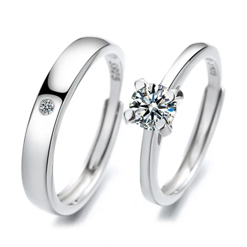 Drop Shipping Sterling Silver 925 Jewelry Adjustable Zircon Diamond Open Ring Wedding Rings Couple Set