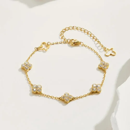 Dylam Lucky Four Leaf Clover Bracelet S925 Silver Jewellery Charm White 5A Cz Cubic Zirconia Bracelets for Women