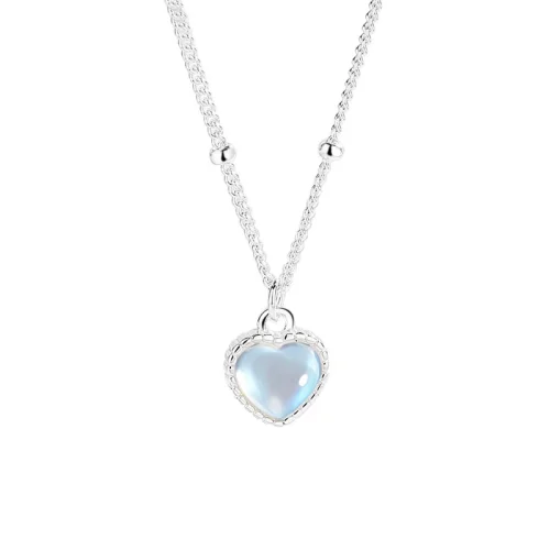 Dropshipping S925 Silver Gradient Dazzling Stone Collarbone Chain Female Girl Sense Stacked Wear Moonstone Heart Necklace