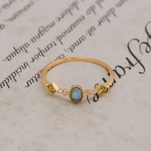 Gemstone Series 3 Stone Rings Green Peridot Aquamarine Fashion Jewelry Rings for Couples Online