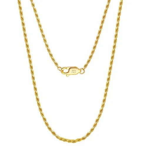 Hiphop Rope Chain 1.2-3.3mm Solid 925 Sterling Silver 18k Gold Plated Cuban Link Twisted Necklace for Women Men
