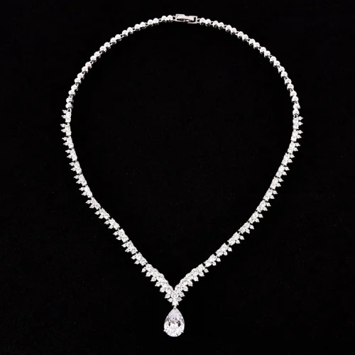 Light Luxury Brass Zircon 3A Cubic Zircon Wedding Necklace Earring Jewelry Set for Bridal Jewelry
