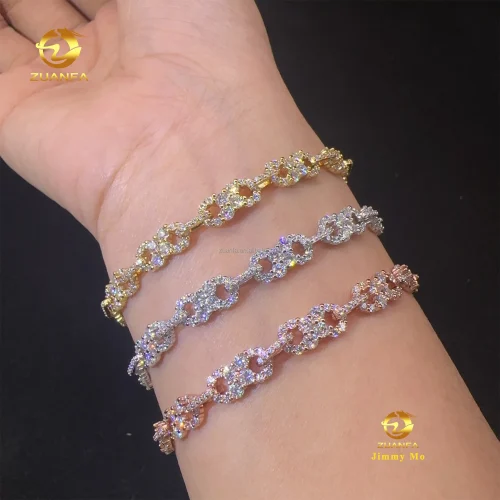 Price New Arrivals Bulk Stock S925 Silver Iced Out Hip Hop Fire Jewelry VVS Moissanite Diamond Infinity Bracelet