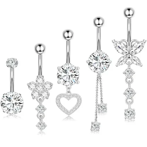 Silver Gold Belly Button Rings Sexy Heart Dangling Navel Piercings Women Men Jewelry Barbell Kit Body Piercings