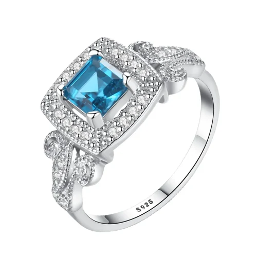Sea Blue Gemstone Ring Fashion Fine Jewelry 925 Sterling Silver Micro Inlay Diamond Engagement Ring for Women