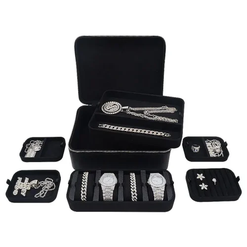 Stock 1 Price High-end PU Leather Packaging Jewellery Organizer Box Watch Case With Handle Travel Jewelry Boxes