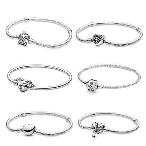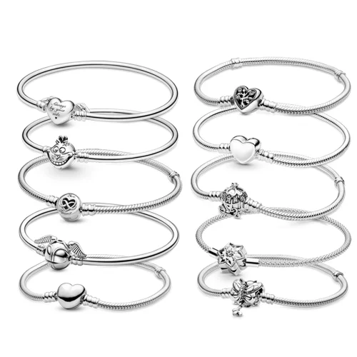 Sterling Silver S925 Fit Original Moment Snake Chain Bracelet Easy-Close Magnetic Clasp Snake Chain Bracelet for Women