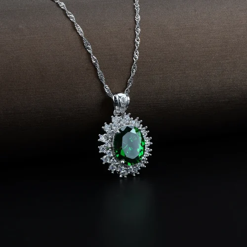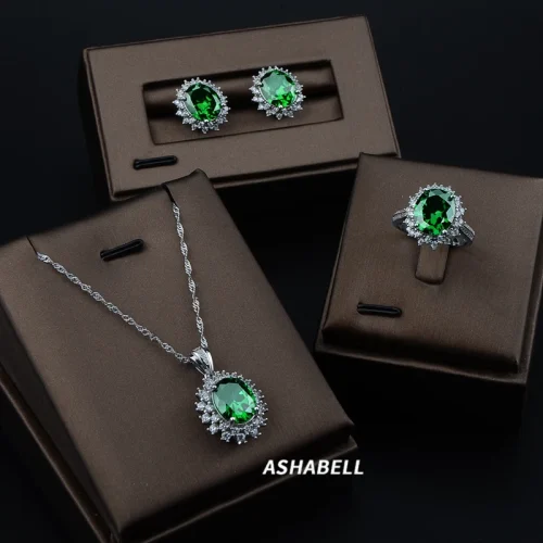 Sterling Silver 925 Jewellery Green Gemstone Set Wedding Set Earrings Ring Pendant Necklace