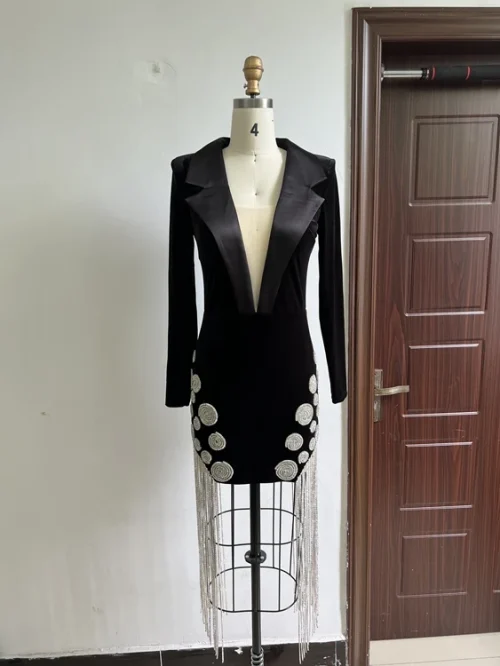 New Women Clothes Elegant Long Sleeve Tassel Office Formal Party Cocktail Dresses