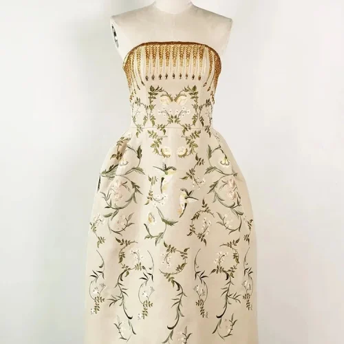 Niche Design Floral Embroidery High Waist Elegant Dress Women’s Clothing 2023 High Quality Sexy Long Women’s Dresses